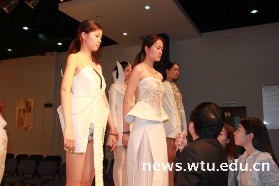 学校领导和服装学院高度重视此次参展,前期的作品和模特挑选由学院专家亲自把关;设计指导、动态表演、妆容指导、视觉传达等相关教师们也全力支持与配合。从去年年底学生开始构思,截止4月23日,经过静态挑选、模特展示四轮反复严格挑选,学院从最初的100多个系列400多套服装中最终挑选出20个系列80套服装参加北京的展示。