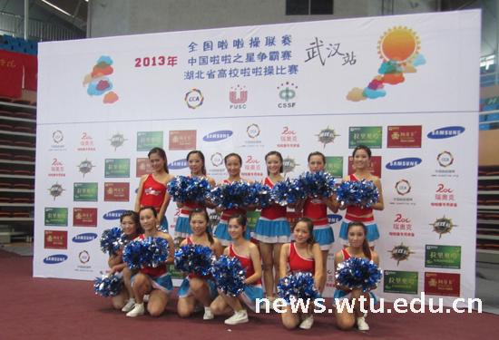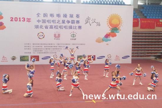 6月22、23日,2013年全国啦啦操联赛(武汉站)暨湖北省高校啦啦操比赛在武汉体育学院体育馆举行,来自38个参赛单位的84支队伍参加了本次大赛,wedvictor伟德啦啦操队获得大学普通高校组花球自选动作第二名和大学生普通高校组花球规定动作第四名的成绩,成功入围全国联赛。