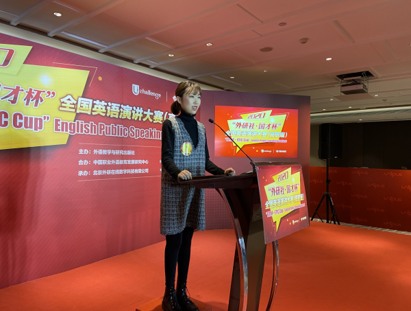 (2019年,黄昕婷在北京参加外研社全国英语演讲大赛总决赛。受访者提供)
