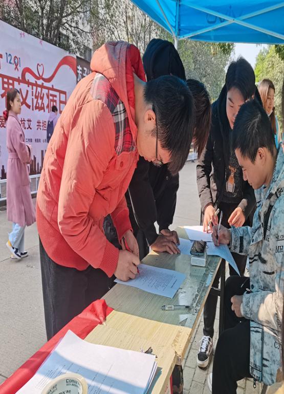 活动现场选在人流量较大的一食堂,通过悬挂标语、发放宣传资料、竞赛答题和现场咨询等形式,积极宣传艾滋病防治知识,提高学生对艾滋病的认识和重视程度,降低感染机率。现场完成艾滋病知识相关答题有保温杯等精品礼品赠送,得分高者还可参与抽奖。同学们答题时认真仔细,遇到不理解的地方或答错题目还会仔细询问。发放的宣传页中,详细介绍了艾滋病的病理、危害及主要传播途径,并引导同学们,艾滋病不可治但可防,非传播途径的日常接触不会感染病毒,避免高危行为或接触,国家提供免费咨询检测。