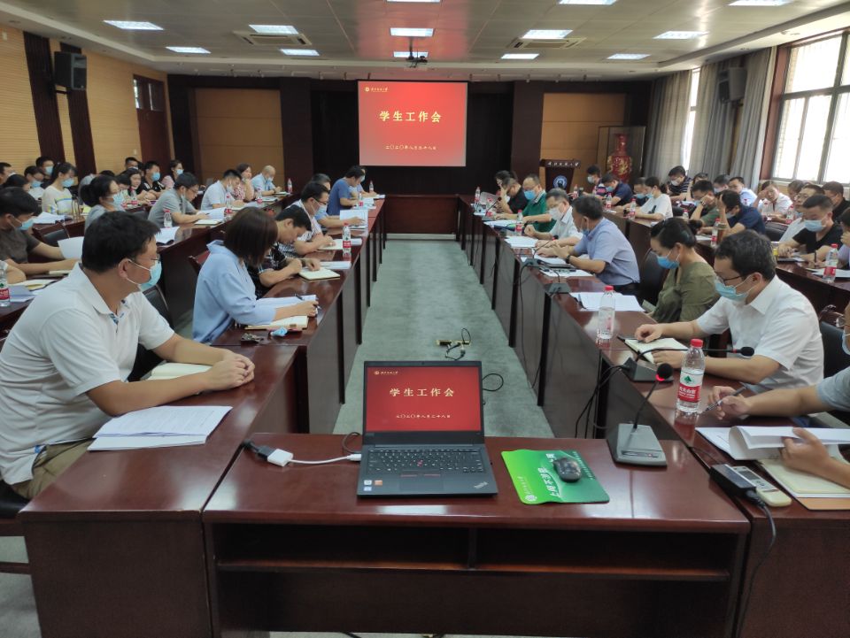 为进一步落实上级疫情防控工作要求,扎实做好2020年秋季学期开学复学等各项工作,8月28日下午,学校在阳光校区行政楼115会议室召开专题学生工作会议,部署安排学生开学返校及新学期相关工作。副校长唐敏、学校办公室、保卫处、财务处有关负责人、各二级学院分管学生工作负责人、全体辅导员和学工部(处)、团委全体工作人员参加会议。会议由学工部部长杜勇主持。