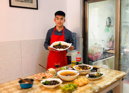 (甘岱麟同学为家人做菜肴)
