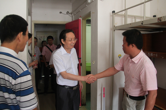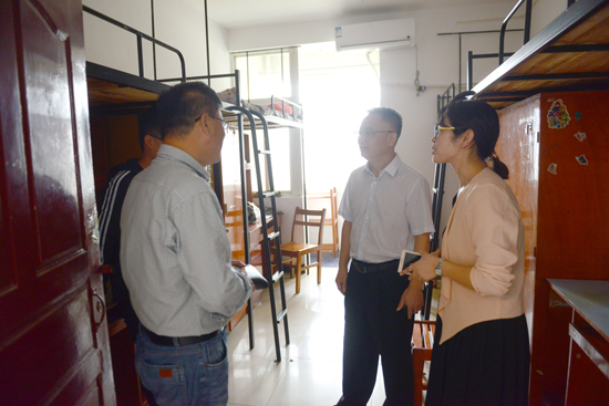 (校党委副书记刘在洲与新生共庆入驻“新家”)