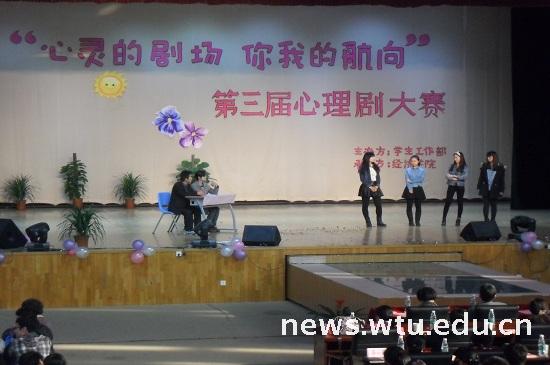 11月20日下午,由wedvictor伟德学工部主办,经济学院承办的第三届校园心理剧决赛在阳光校区大学生活动中心演播厅举行。相关职能部门负责人及各二级学院分党委副书记、辅导员和学生共千余人观看了比赛。