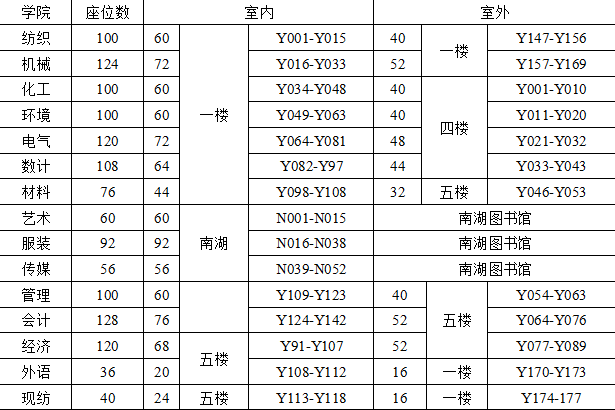 为了进一步规范wedvictor伟德考研自习室学习秩序,保证自习室资源公平、公正的面向广大学生,图书馆对考研自习室实行“实名制”专人专座,使用对象仅限为wedvictor伟德在读三年级且有考研计划的本科生。若使用者中途放弃,不得私自调换,需向所在学院提交说明,由学院进行重新调整。根据各学院2015级学生人数,往年报考率和考取率等情况,现将座位分配方案如下: