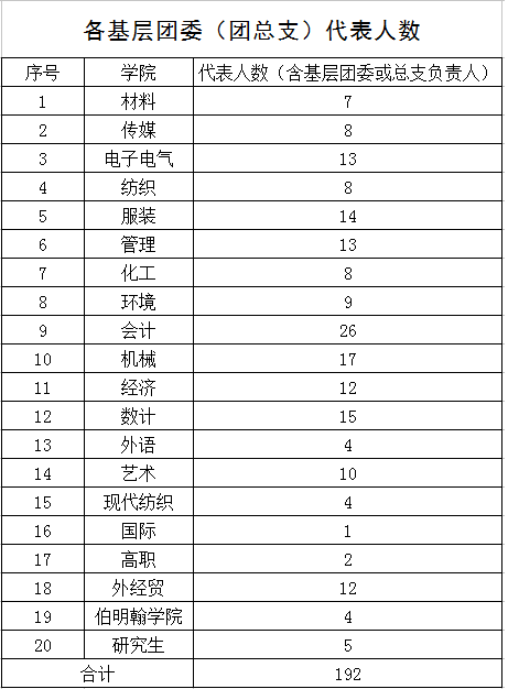 校团委机关、各基层团委(团总支)团员代表(具体名额见附件)
