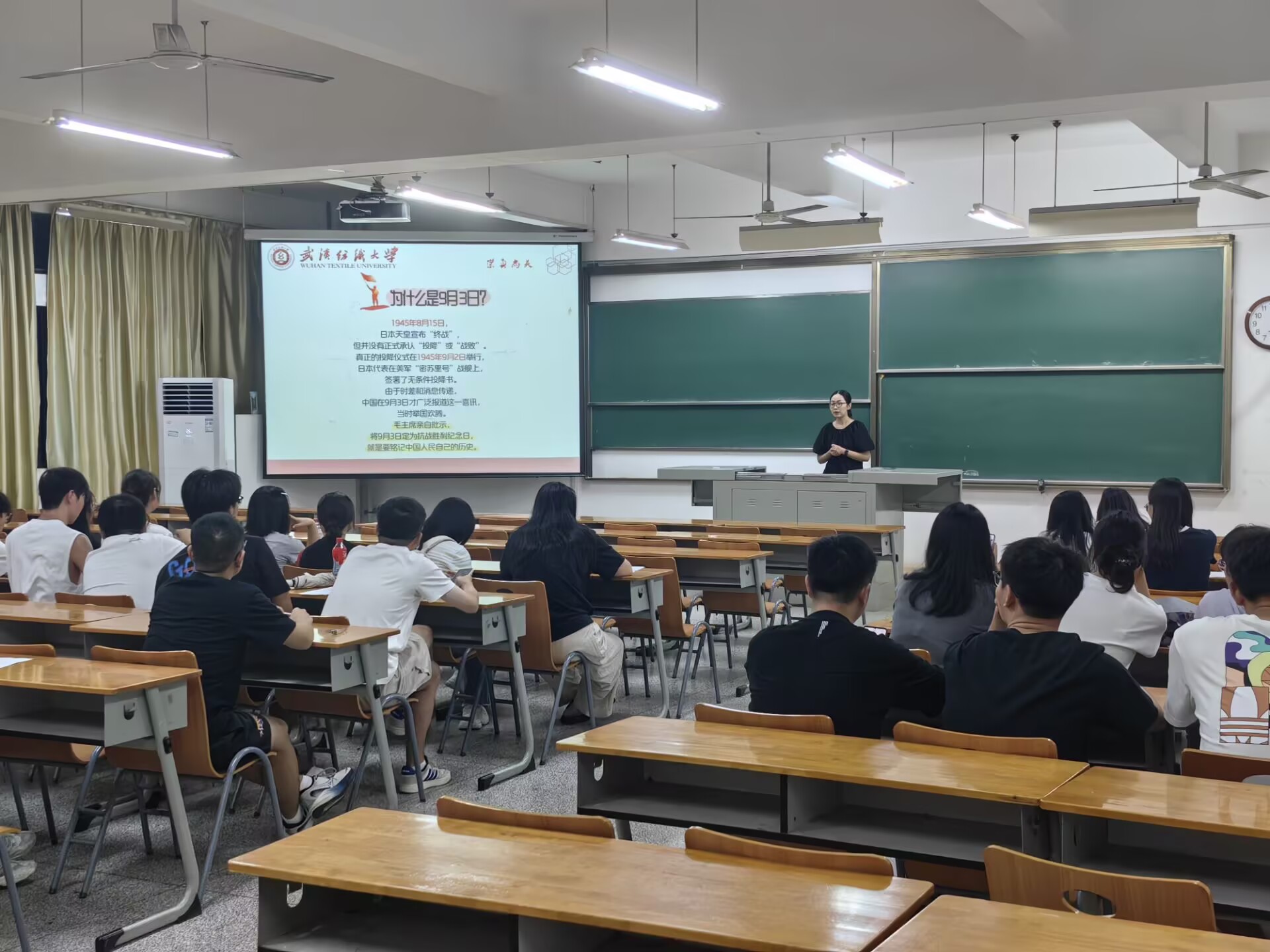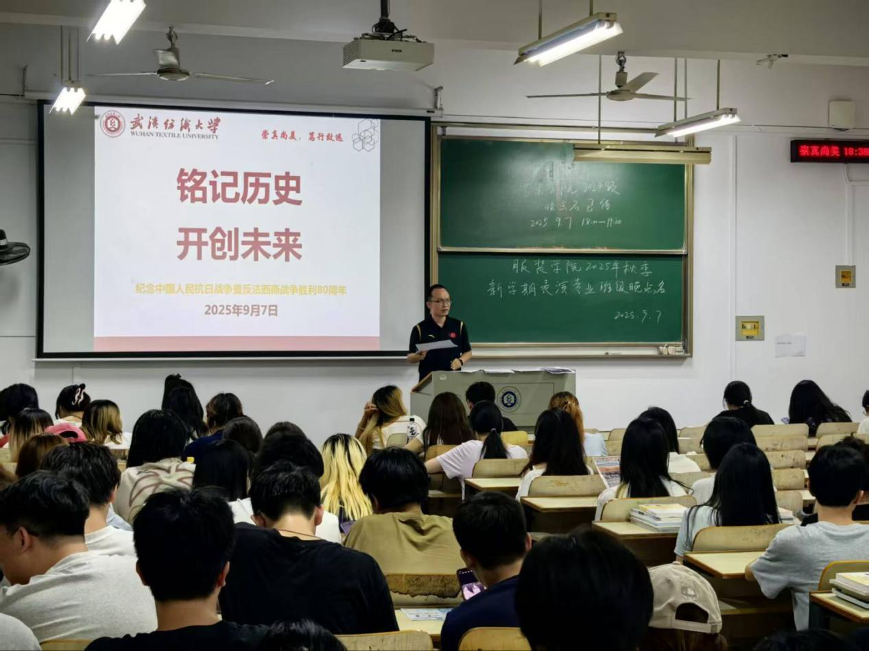 服装学院召开 “铭记历史 开创未来 —— 纪念中国人民抗日战争暨世界反法西斯战争胜利 80 周年”暨开学第一周 主题班会