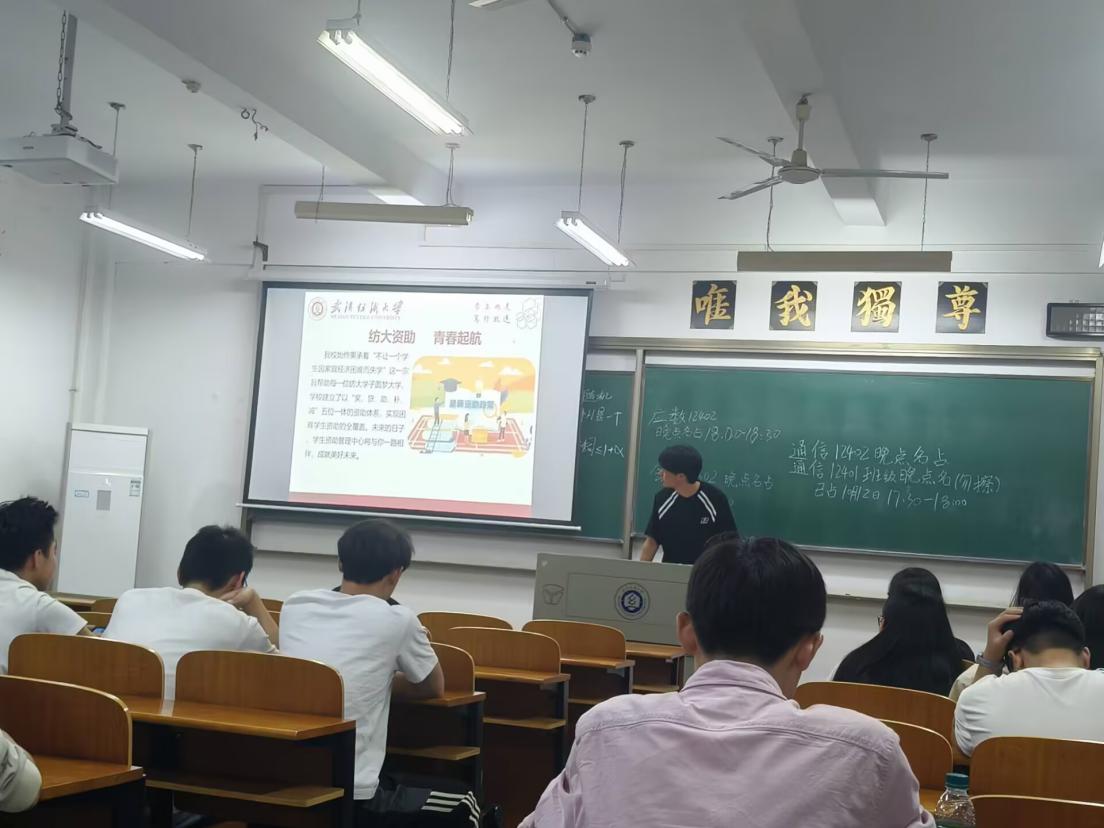 班会上,辅导员们首先围绕“奖、贷、助、补、减”五位一体的资助体系,详细介绍了国家奖学金、国家助学金和临时困难补助等多项资助政策的申请条件与评审流程。此外,老师还结合电信诈骗案例开展了防诈骗警示教育,进一步增强学生安全意识和辨别能力。