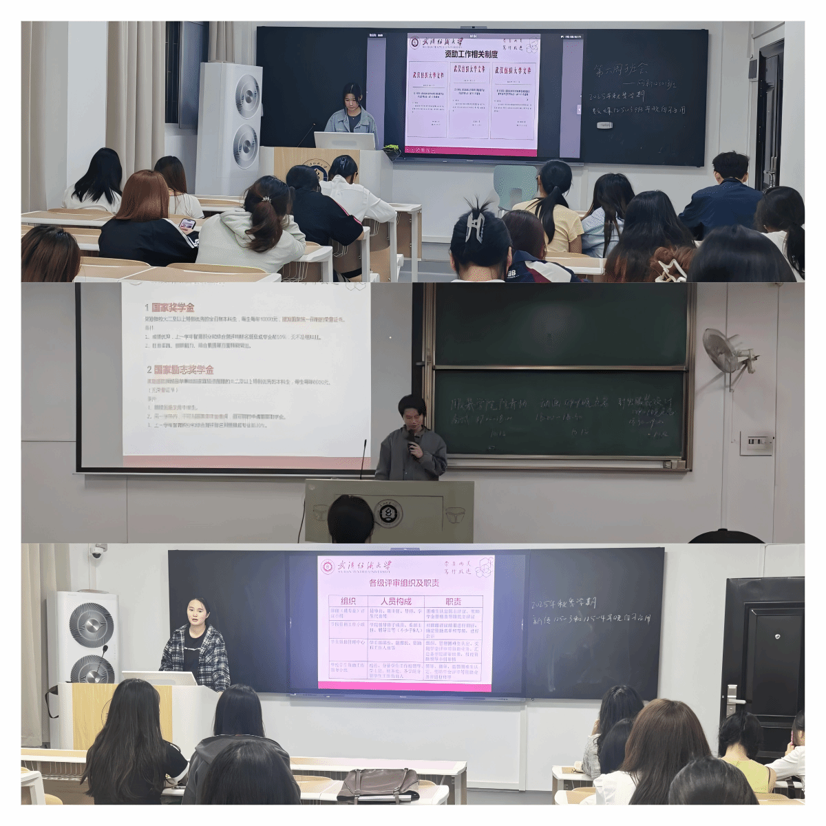 本周,各班级成功召开主题班会,向新生系统宣讲了学校“奖、贷、助、补、减”五位一体的资助体系 。