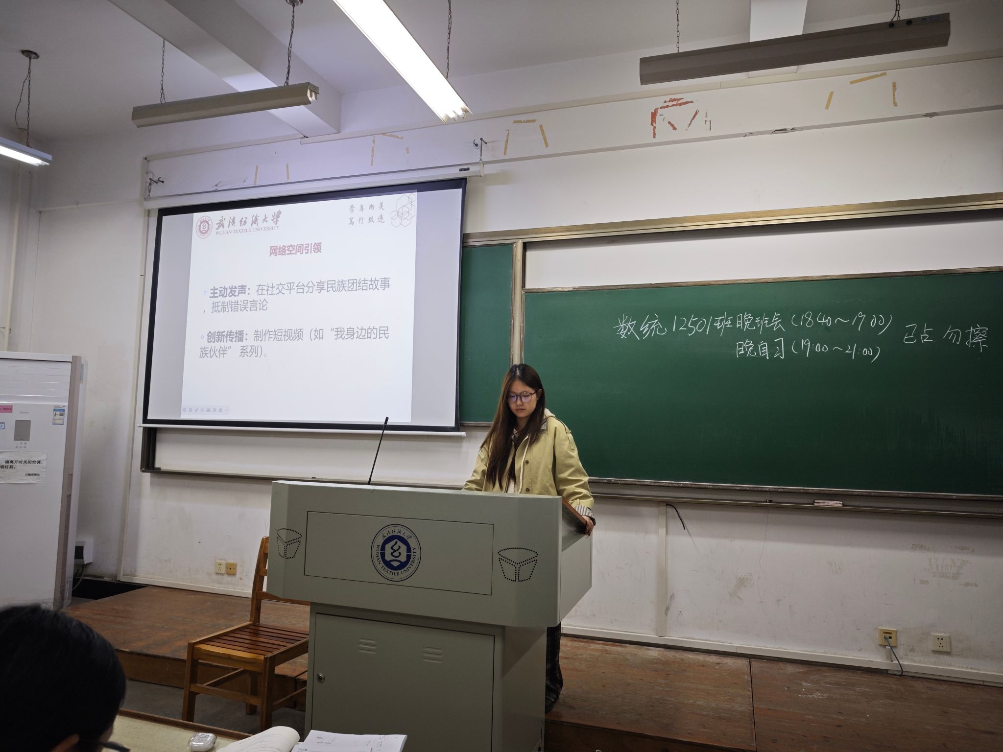 2024级辅导员苗帅在晚班会教育中,聚焦“铸牢中华民族共同体意识”与“校园电动自行车治理”两大主题。在铸牢中华民族共同体意识方面,深入解读其概念,强调各民族休戚与共,通过历史脉络展现其发展,明确其对国家统一、学生发展的重大意义,并指出大学生应在课堂内外、实践服务、网络空间积极践行。对于校园电动自行车治理,分析了校园内电动自行车数量多带来的消防、交通安全风险及校园秩序混乱问题,介绍了学校通过引入共享电动自行车、完善基础设施、开展实名登记授牌等工作举措,并强调下一阶段将持续改进,教育处罚并举规范车辆行停管理,呼吁师生共同维护校园安全与秩序,携手铸牢中华民族共同体意识,共建平安和谐校园。