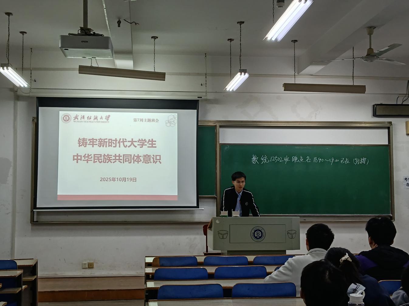 班会首项主题聚焦“铸牢新时代大学生中华民族共同体意识”。各班班主任首先围绕“何为中华民族共同体意识”展开讲解,阐释了其作为中华民族多元一体格局的精神内核,是各民族共同命运、共同理想、共同奋斗的情感纽带与思想基础。随后,会议深入探讨了“为何要在大学生中铸牢中华民族共同体意识”,强调大学生是国家与民族的未来,牢固树立此意识对于促进民族团结、维护国家统一、实现中华民族伟大复兴具有至关重要的战略意义。在“大学生如何践行”环节,同学们积极讨论,认识到应将共同体意识内化于心、外化于行,通过加强理论学习、增进交流互鉴、勇担时代使命,争做维护民族团结和社会稳定的积极践行者。