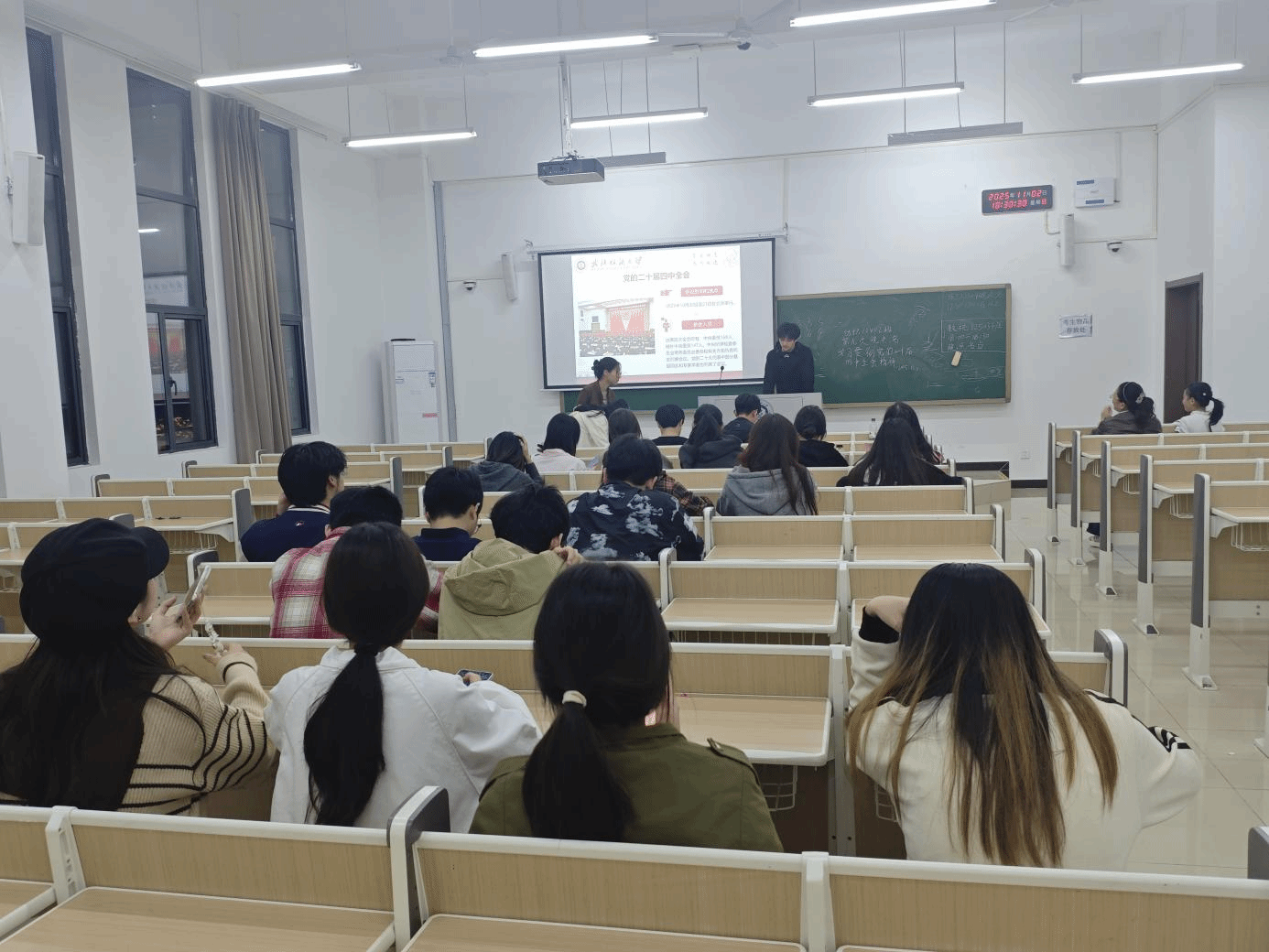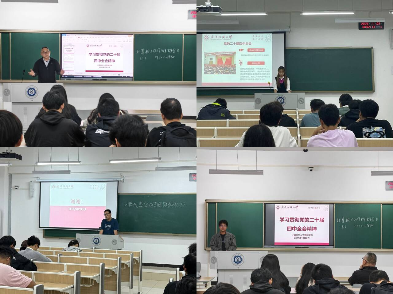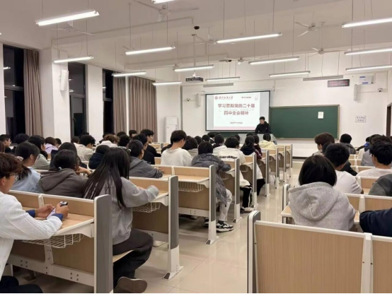 11月2日,学院在崇志楼各晚点名教室开展“学习贯彻党的二十届四中全会精神”主题班会。