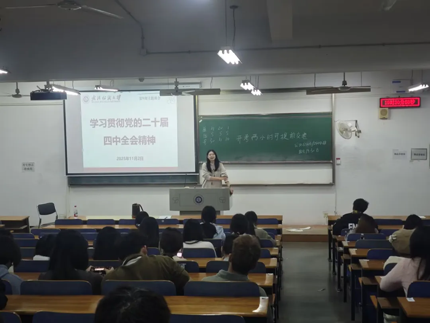 2025年11月2日下午,管理学院组织全体学生围绕学习贯彻党的二十届四中全会精神开展了一场内容丰富的主题教育活动,活动由各班班主任和辅导员主持。