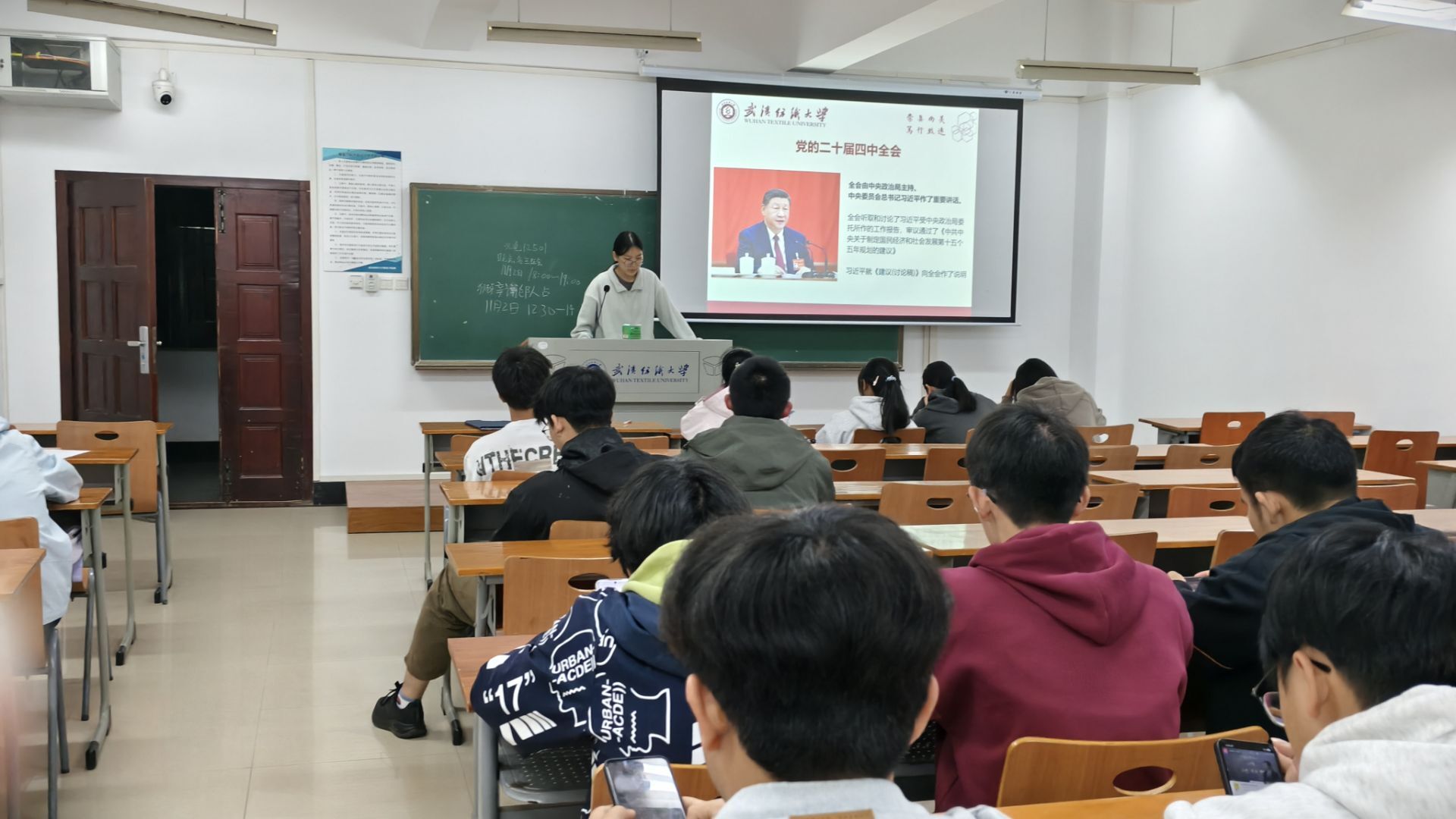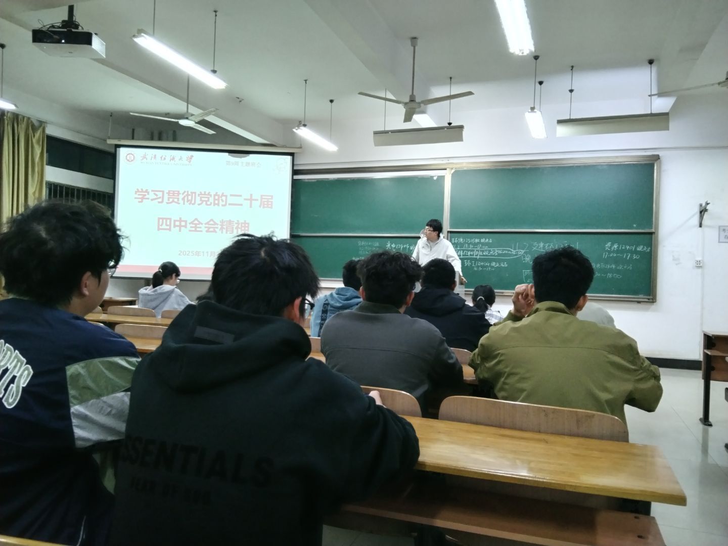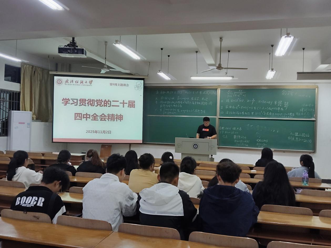 2023和2022级各班班主任们在第九周晚班会教育中,深入开展“学习贯彻二十届四中全会精神”主题班会,他们带领学生系统学习全会关键内容,重点解读“十五五”时期国家发展的目标任务与战略布局,通过结合青年学生成长实际的讲解,引导大家深刻理解新时代国家发展方略的内涵,进一步强化青年学子的时代责任感与使命担当。随后针对学校发布的两类重要资助评选通知——《2024-2025 学年本科生攀登奖学金评选工作的通知》与《wedvictor伟德开展2024-2025学年武汉纺织大学“先进班级”、“先进个人”评选工作的通知》,开展专项政策宣讲。最后结合持续推进的爱国卫生运动要求,再次强调宿舍清洁卫生的重要性,教育引导学生养成良好生活习惯,共同营造整洁、文明、和谐的宿舍生活环境。