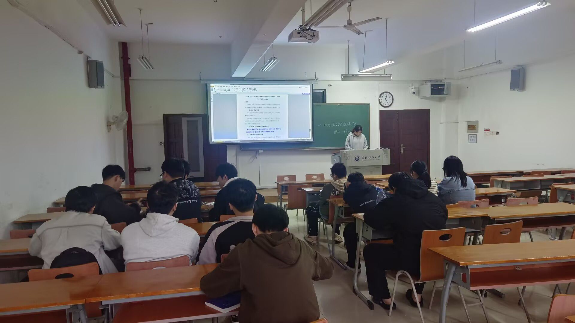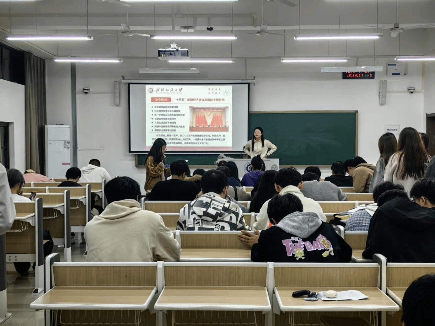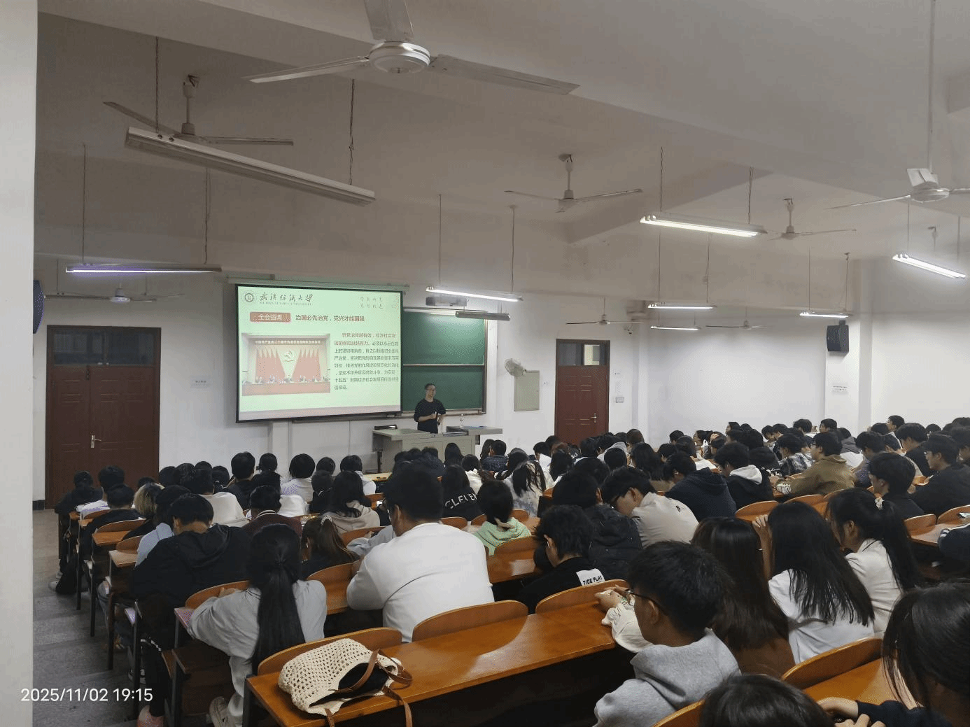 2023和2022级各班班主任们在第九周晚班会教育中,深入开展“学习贯彻二十届四中全会精神”主题班会,他们带领学生系统学习全会关键内容,重点解读“十五五”时期国家发展的目标任务与战略布局,通过结合青年学生成长实际的讲解,引导大家深刻理解新时代国家发展方略的内涵,进一步强化青年学子的时代责任感与使命担当。随后针对学校发布的两类重要资助评选通知——《2024-2025 学年本科生攀登奖学金评选工作的通知》与《wedvictor伟德开展2024-2025学年武汉纺织大学“先进班级”、“先进个人”评选工作的通知》,开展专项政策宣讲。最后结合持续推进的爱国卫生运动要求,再次强调宿舍清洁卫生的重要性,教育引导学生养成良好生活习惯,共同营造整洁、文明、和谐的宿舍生活环境。