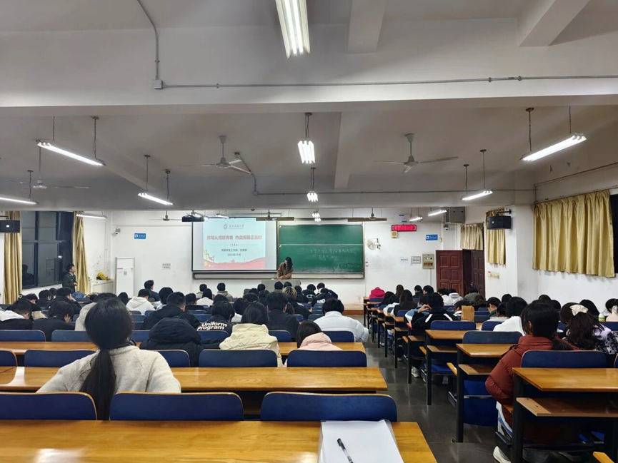 11月23日,学院在崇志楼各晚点名教室开展“携笔从戎砺青春 热血报国正当时”主题班会,围绕2026年征兵工作相关政策、流程及要求,面向各年级学生开展专项宣传动员,引导青年学子响应国家号召,以青春之力投身国防事业。