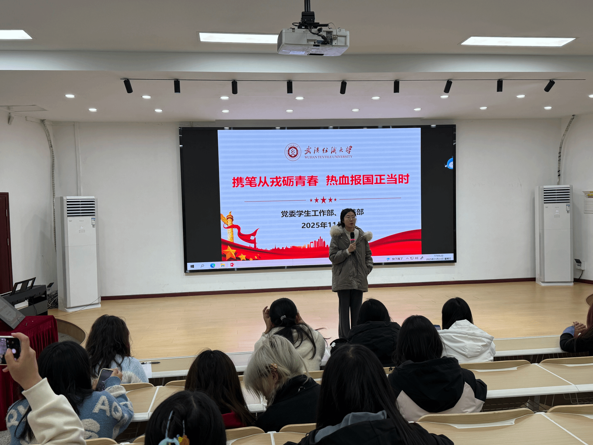 为响应国家征兵号召,引导青年学子将个人理想融入国防建设,11月23日,服装学院组织各班级开展“携笔从戎励青春,热血报国正当时”主题班会,全院学子参会,扎实推进学生管理与思想引领各项工作。