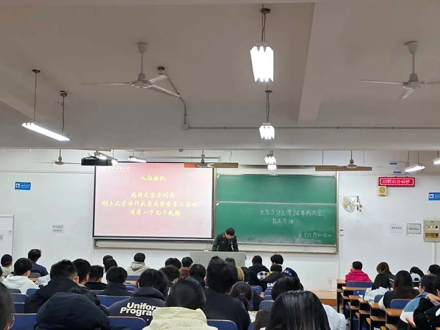 为响应国家征兵号召,引导青年学子将个人理想融入国防建设,11月23日,化工学院以“携笔从容砺青春,热血报国正当时”为主题开展征兵宣传主题班会。全院各年级学子参会,班会聚焦入伍政策解读、国防意义阐释等核心内容,为有志投身军营的同学搭建精准指导平台。