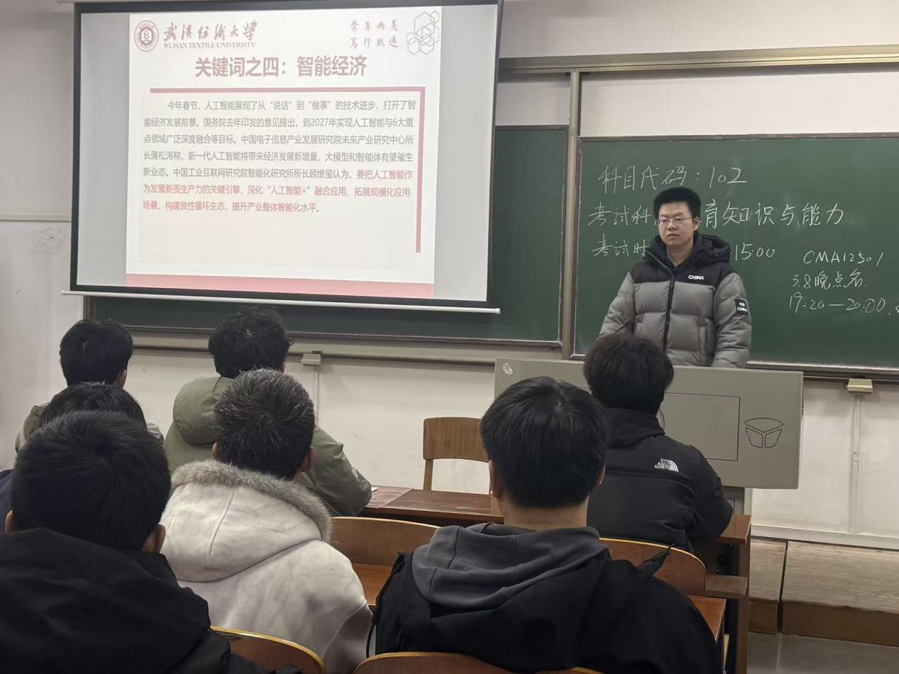 在讲解中,各班班长重点阐释了“智能经济”这一全新提法,强调人工智能等新技术正深刻改变经济形态,为青年学子在科技创新、产业升级等领域提供了前所未有的机遇。同时,他结合“投资于人”的关键词,解读了两会在教育、就业、医疗等民生领域的部署,鼓励同学们将个人发展融入国家发展大局,在服务社会中实现人生价值。