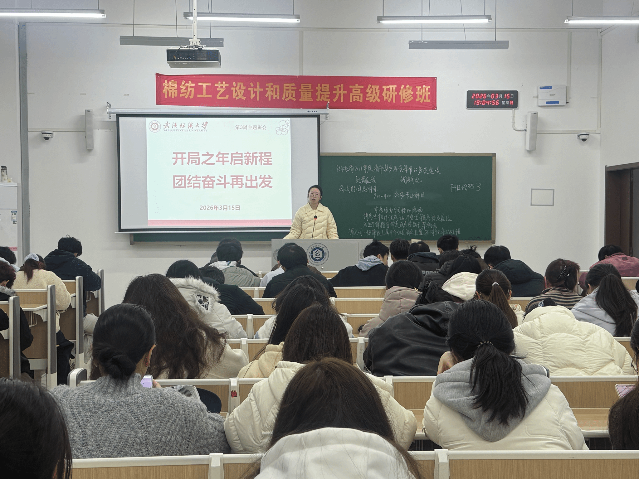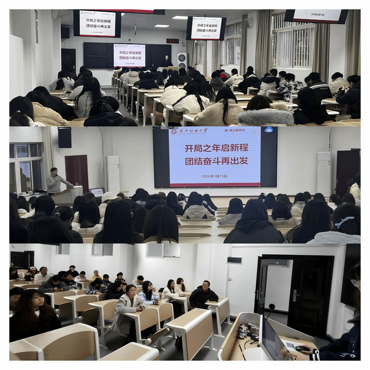 为深入学习贯彻2026年全国两会精神,引导学子锚定“十五五”发展蓝图找准成长方向,将个人专业发展与国家战略需求紧密结合,3月15日,武汉纺织大学服装学院各班级有序开展第二周“开局之年启新程 团结奋斗再出发”主题班会,以思想引领明方向,以实干笃行聚力量,推动新学期育人工作走深走实。