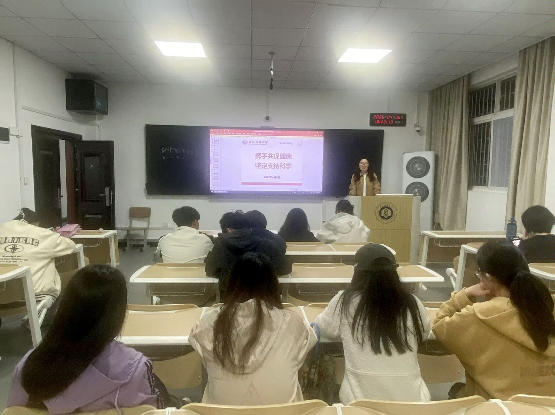 为普及科学健康理念,引导学生树立健康生活方式,4月6日,学院在崇礼楼组织全体研究生与本科生各年级开展“携手共促健康 坚定支持科学”晚点名班会。