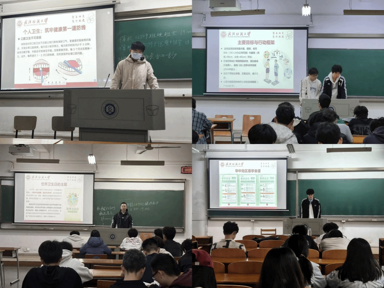 老师们结合今年世界卫生日“共享科技创新,携手共促健康”的主题,进行了卫生健康知识科普与科学健康生活方式指导。班会从科学视角出发,分享合理运动方案与均衡营养食谱,倡议同学们养成规律作息、科学饮食、适度锻炼的健康生活方式;同时聚焦身心健康协同发展,提醒大家关注情绪调节与心理调适,共同营造干净整洁、文明有序的学习生活环境。老师们以通俗易懂的语言、贴近校园生活的鲜活案例,深入阐释健康管理与个人成长、家国发展的内在联系,鼓励同学们将科学健康理念转化为日常点滴行动,践行科学健康的生活方式。