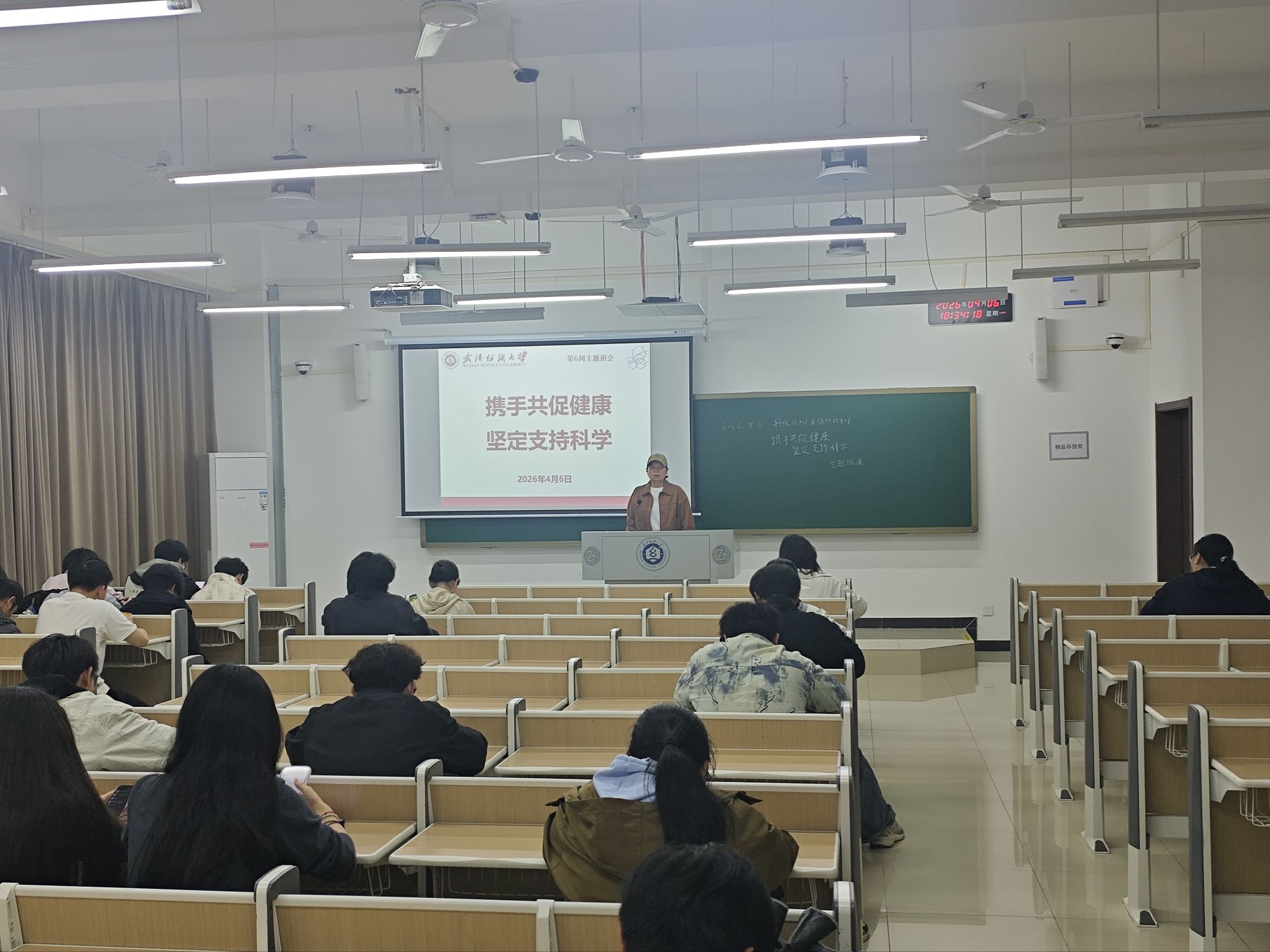 为引导学生树立科学健康观念,增强健康防护意识,养成良好生活习惯,4月6日,纺织学院组织开展“携手共促健康 坚定支持科学”主题班会活动。班会由辅导员、班主任主持,全体本科生共同参与。