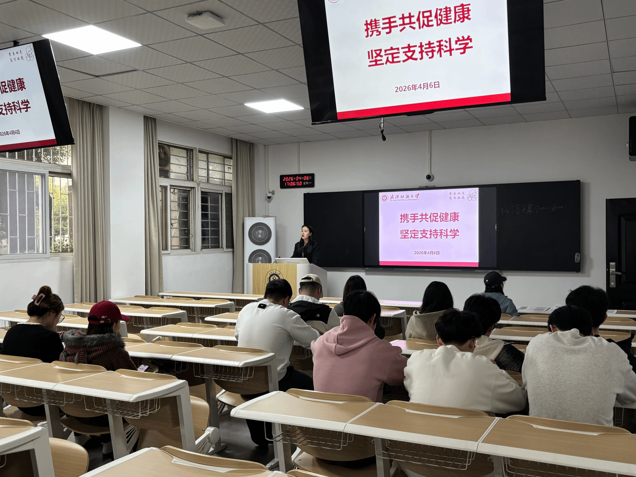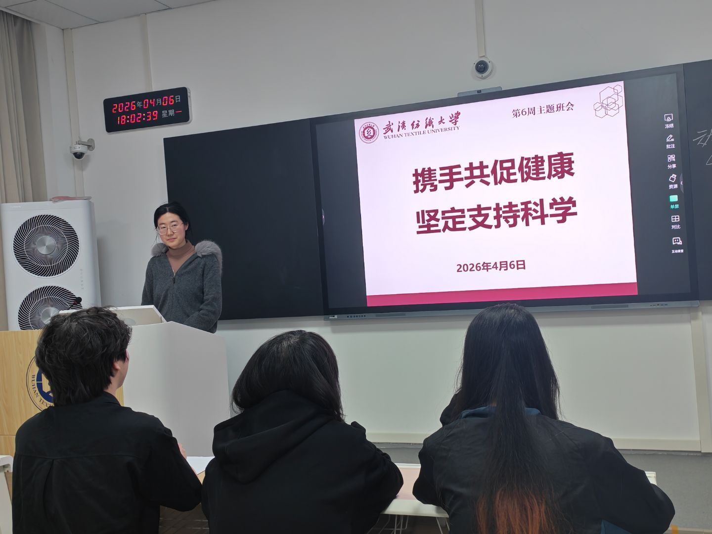 纺织学院开展“携手共促健康,坚定支持科学”主题班会