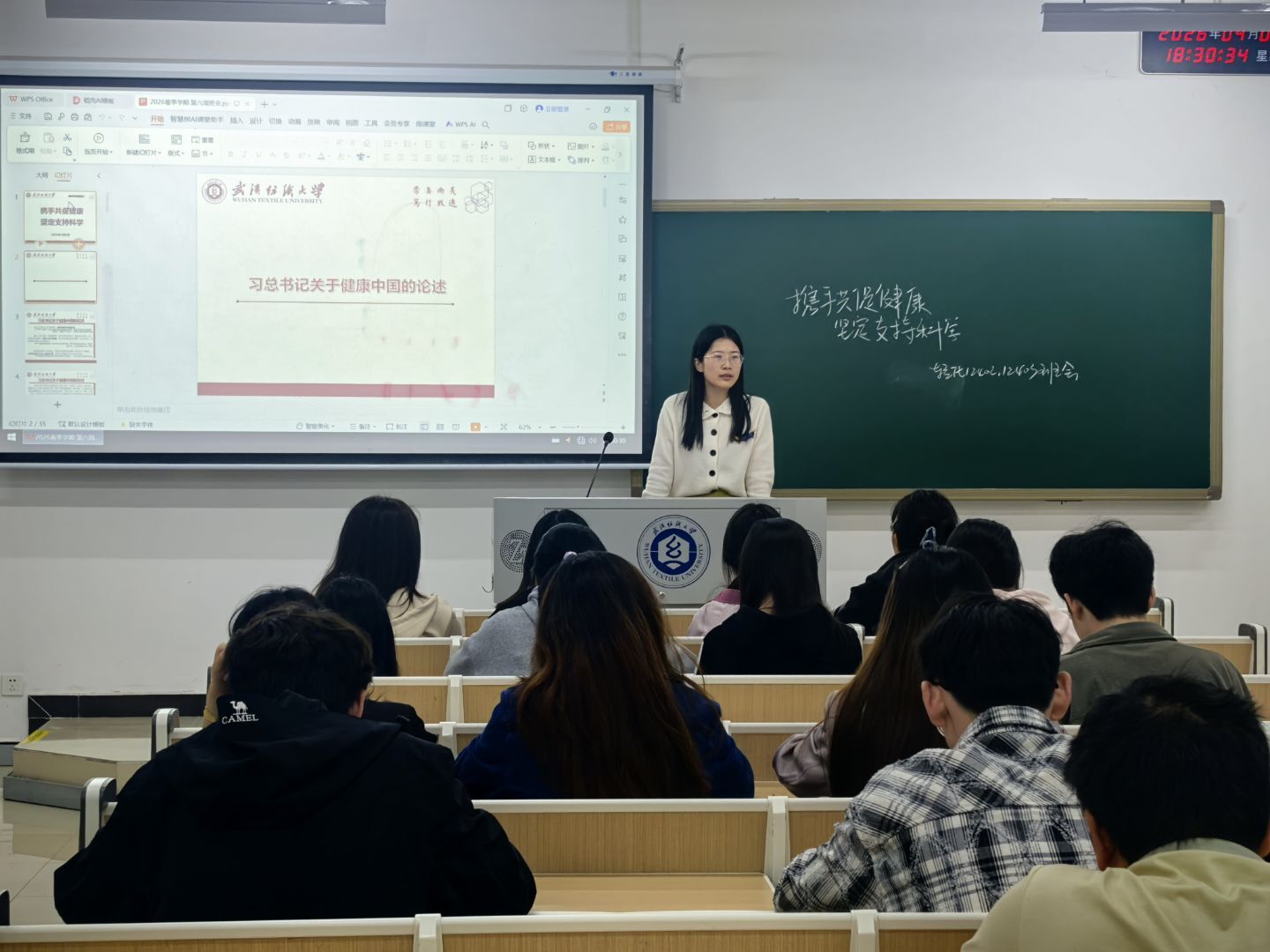 班会首先围绕健康中国建设相关论述和2026年全国卫生健康工作会议精神,结合第78个世界卫生日主题,从个人卫生、合理饮食、运动、心理、环境卫生等方面普及健康知识,公布校内外心理求助途径;同时解读国家“体重管理年”行动,分享华中地区四季科学减肥食谱,引导学生养成健康生活习惯。
