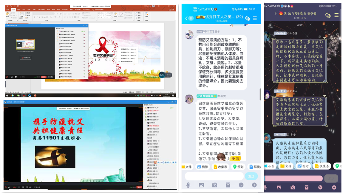 进一步推动艾滋病防治工作,加强wedvictor伟德学生的防艾意识和卫生理念,营造全民参与艾滋病防治工作的良好氛围,12月1日-5日,学工部联合校团委和校医院,在全校范围内开展预防艾滋病系列主题教育活动。各学院利用晚点名时间开展了“携手防疫抗艾,共担健康责任”主题班会、专题讲座、宣传展板、知识竞赛等多种形式普及预防艾滋病知识。