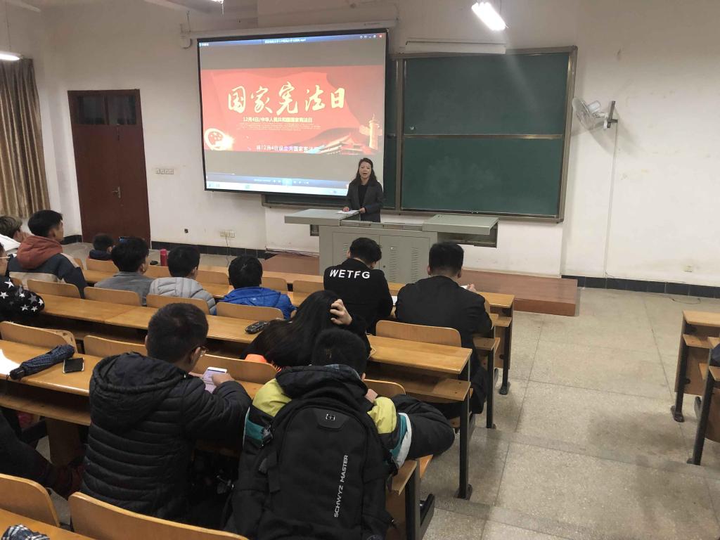 为弘扬社会主义法治精神,进一步增强学生法治观念,营造平安和谐校园氛围,遵照校学工部有关指示,12月2日,机械学院各班级分别组织学生开展“法律伴我行宪法在我心”主题班会。